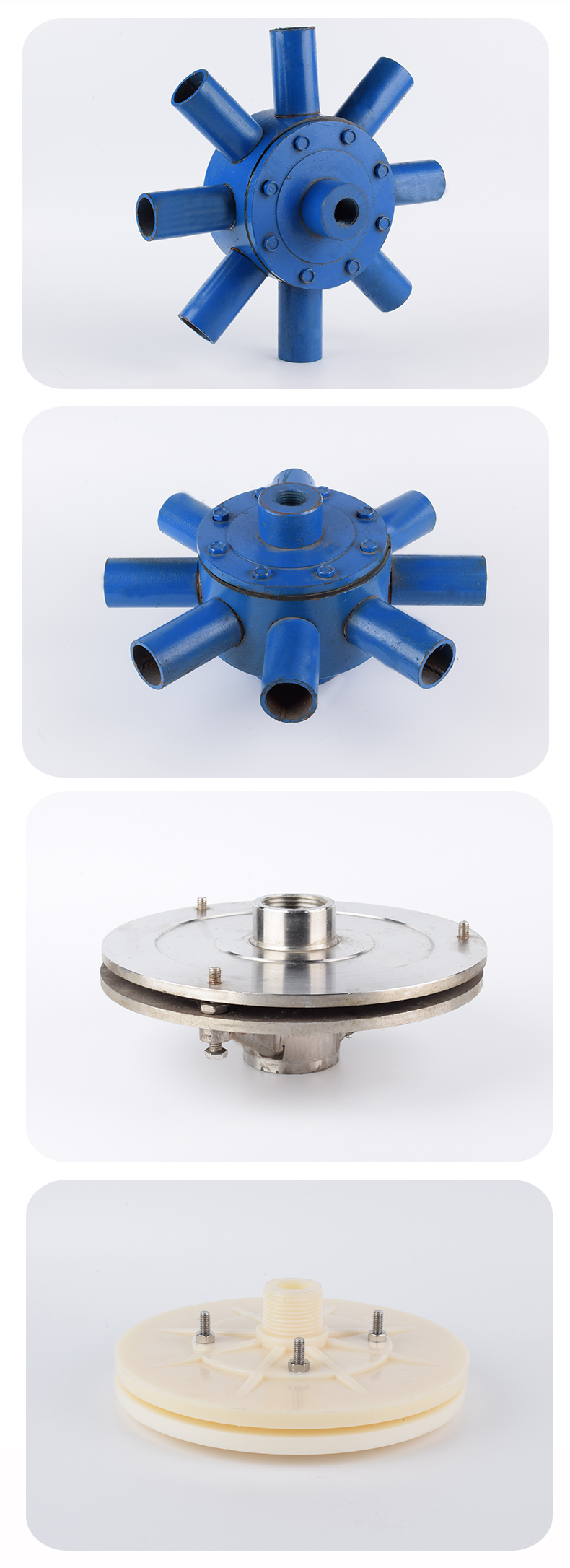 釋放器是溶氣氣浮凈水系統中關鍵裝置。壓力溶氣水只有通過該裝置降壓消能后,才能釋放出大量的微細氣泡,釋放器性能的好壞,涉及到氣泡的微細度,它直接影響氣浮法凈水的效果。本釋放器可反沖洗,不易堵塞。